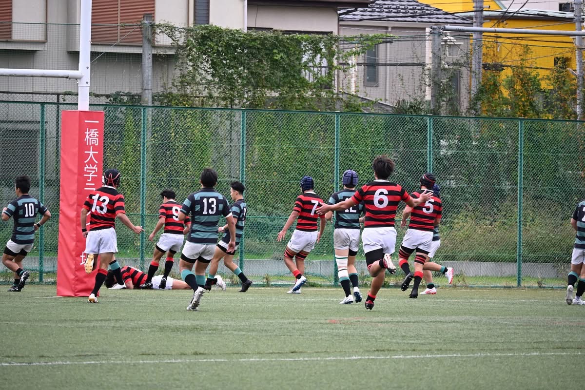 後半36分、相手ボールの自陣10mでのラインアウトから左側に抜けられそのまま押し込みで#岩永がゴール左にトライ。コンバージョンは失敗。(一橋 34ー26 成城)